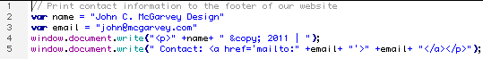 var name = "John C. McGarvey Design" ;