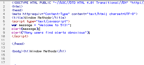 In this tutorial you will learn about two methods of the window object and how to define variables in JavaScript.