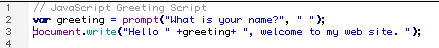 var greeting = prompt("What is your name?", " ");