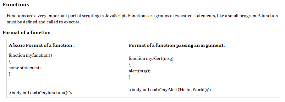 In order to execute a function, it needs to be called. In this example, an onload event handler within the body tag executes the function.