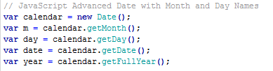 Next, we are going to create another series of variables for the other get methods for the day of the month and the year. Then we will rewrite the document.write statement to print the variables and text string to the screen.