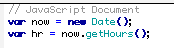 Create a variable called now that stores a new date() object. Then use the getHours() method to get the current hour and store it in the variable hr.