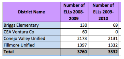 Produce a report on the enrollment of English Language Learners in Ventura Co. schools.