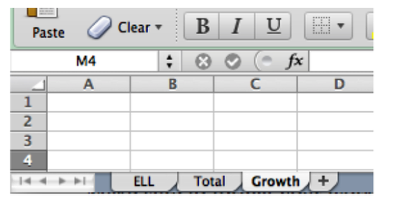 - Save your work. Your file (Data_YourName.xls) now has three worksheets: ELL, Total and Growth.