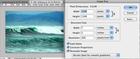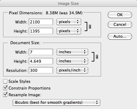 Go back under the Image menu and select, Image Size to review the size and resolution of the 5 x 7 image.