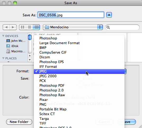 If you are working with photographs, most of the time you will be editing and saving your image in the jpeg format. This is the preferred format for publishing a photograph on the web or printing a image.