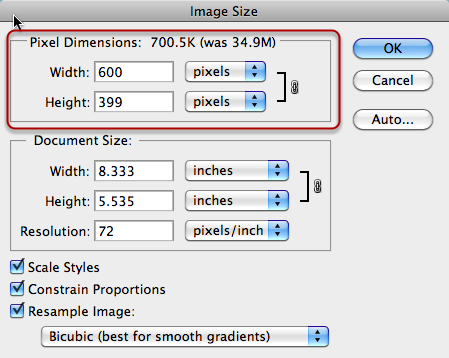 - For this example, I want the image to be less then 600 pixels, so I am going to change the width to 600.