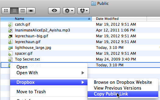 If you want to share this file on the Internet, then you need to upload it to your Public Dropbox folder. Anything saved to this folder is available to anyone on the Internet.