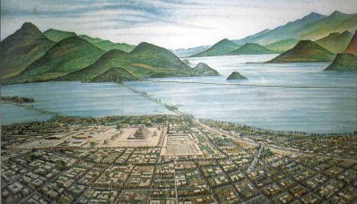 Tenochititlan, site of modern day Mexcio City, home of the Aztec's Empire.