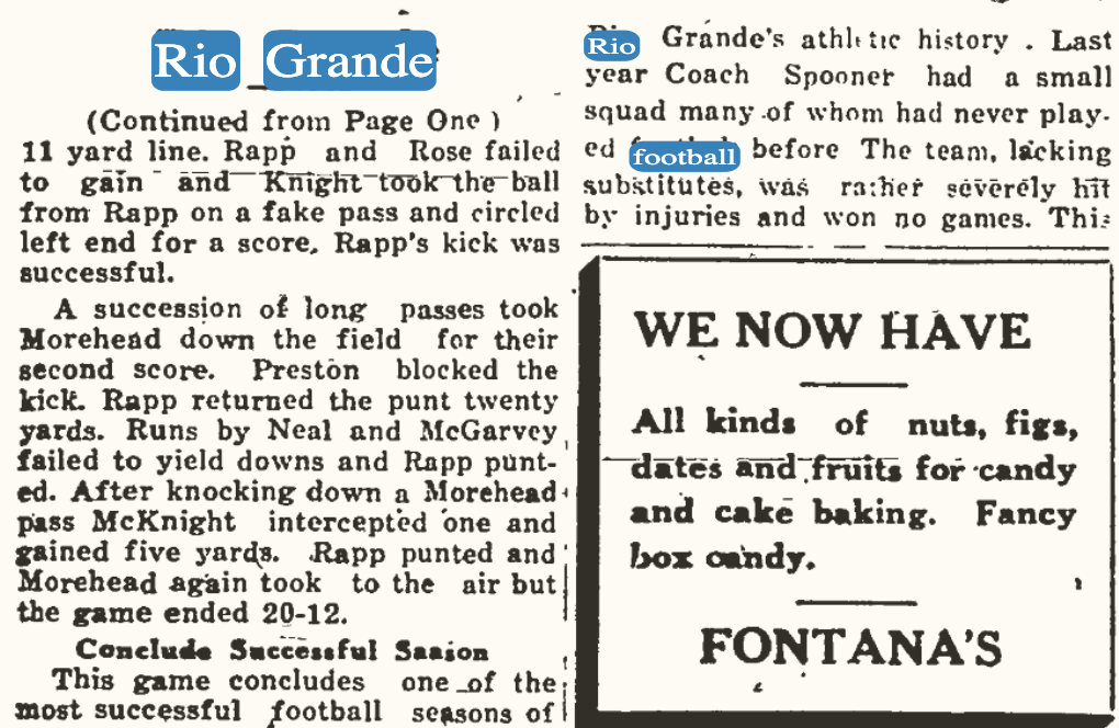 The surviving clippings show a competitive Rio Grande team under new leadership, with