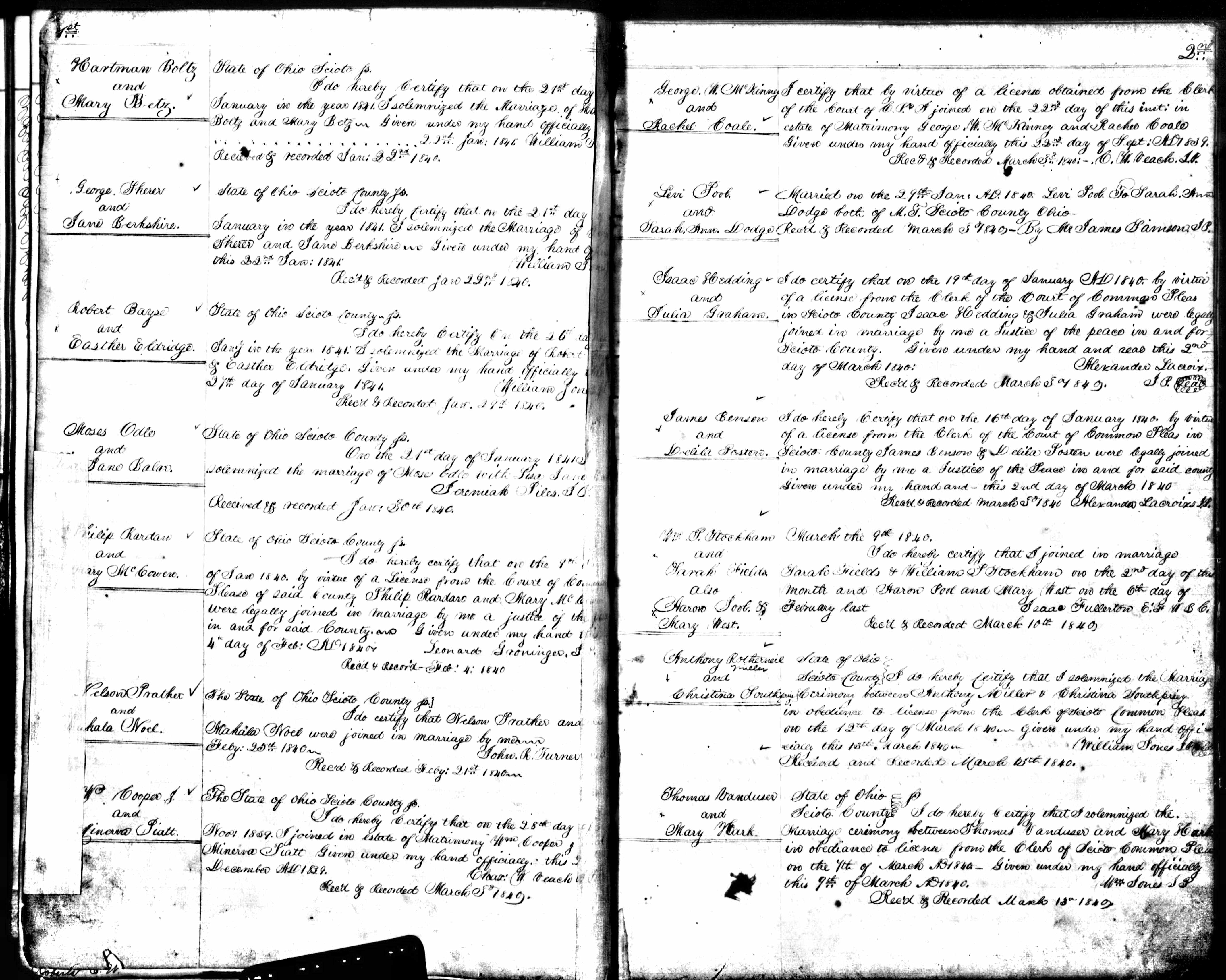 7. Scioto County, Ohio. Marriage Records, 1840. Entry associated with Isaac Heading, recording a spouse name as Julia Graham, January 19, 1840. Scioto County, Ohio.